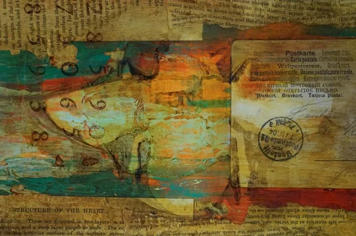 Acrylic paint, collage, watercolor, ink